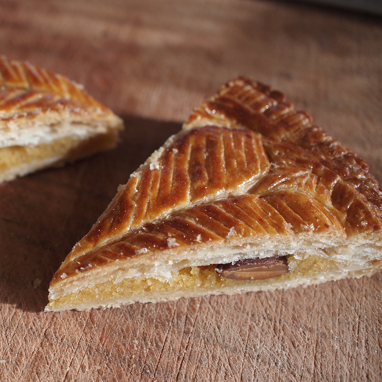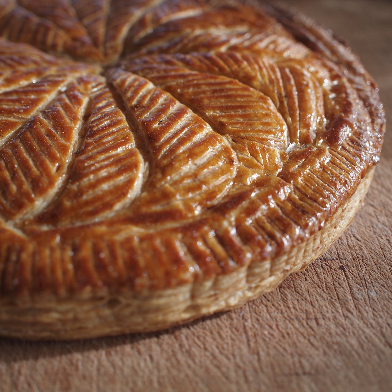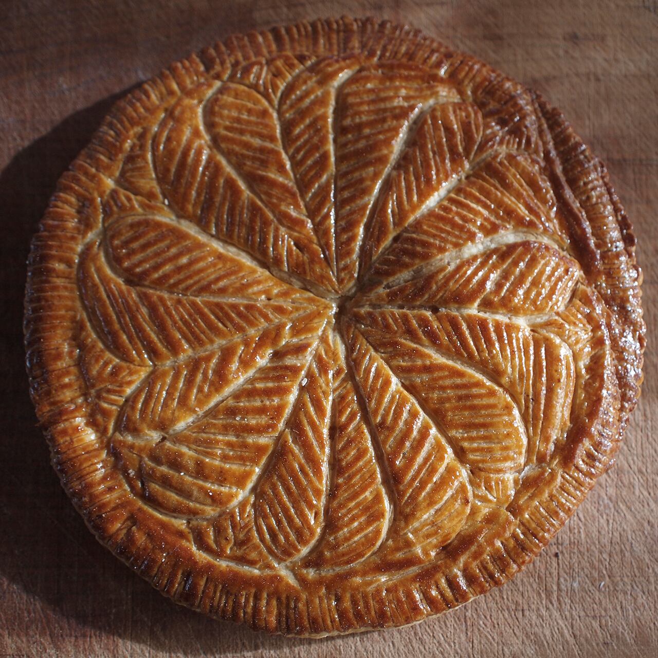フランスで新年のお祝いに食べられているアーモンドクリームのパイを、長野県の地粉中力粉と長野県上田市産シラネコムギ全粒粉を使った手折パイ生地で焼きました。